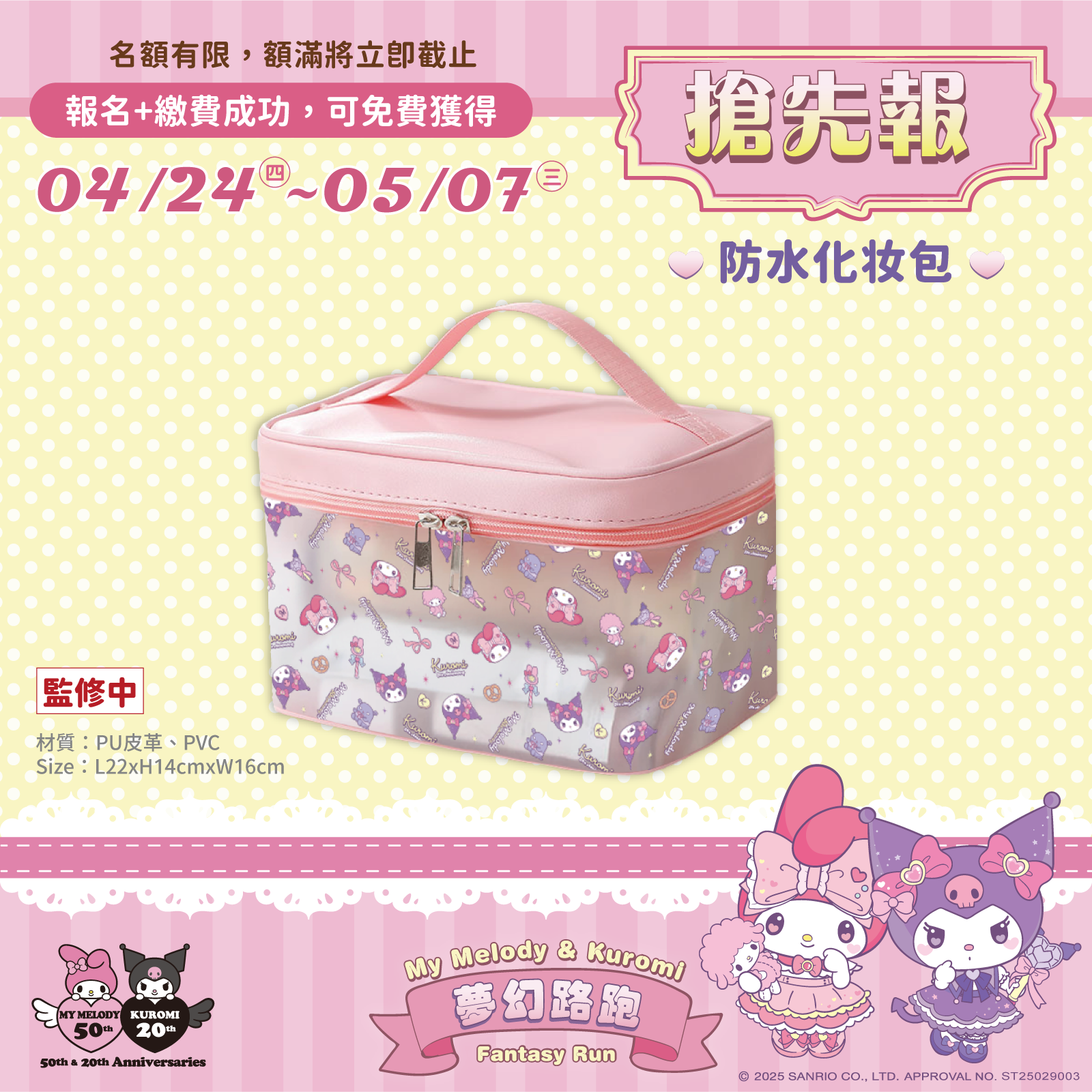 ▲5/7(三)23:59前報名,就送限量「美樂蒂 & 酷洛米防水化妝包」!