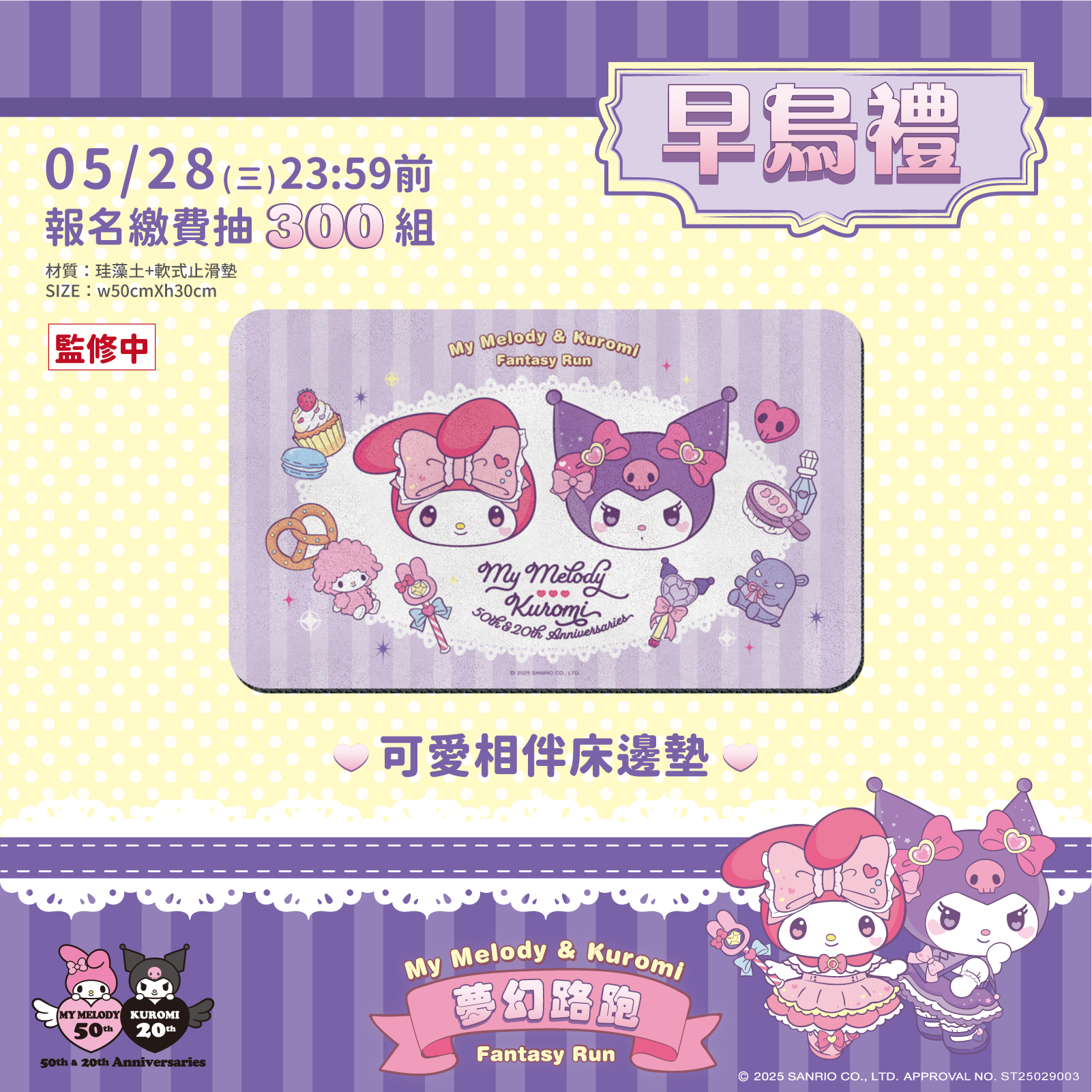 穿上最可愛的限定T恤,背起療癒滿分的絨毛包包,讓步伐都變得輕盈起來!為了慶祝美樂蒂50週年 & 酷洛米20週年,全統運動報名網攜手美樂蒂 & 酷洛米,舉辦這場充滿驚喜與幸福的夢幻路跑!現場將設置超可愛拍照打卡點,精緻細節讓每個角落都好拍到不行!還有超趣味互動遊戲,讓粉絲們不只能跑步,還能玩得開心、拍得滿意,擁有一場最獨特的美好回憶!